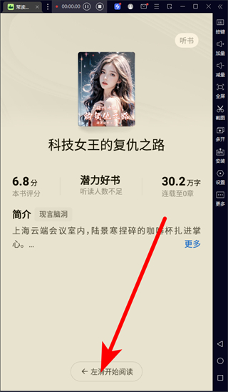 1、在常讀小說(shuō)閱讀頁(yè)面,左滑開始閱讀后進(jìn)入小說(shuō)內(nèi)容界面。