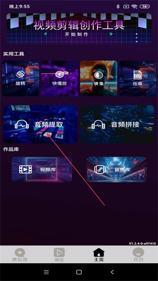 2、進入主頁的界面內,用戶需點擊音頻提取的功能按鈕。