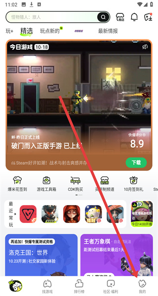 1、打開好游快爆APP,點(diǎn)擊首頁右上角的搜索圖標(biāo),進(jìn)入搜索頁面。