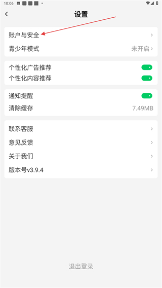 3、進入設(shè)置的頁面內(nèi),點擊賬號與安全的功能按鈕。