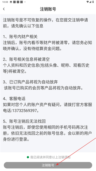 5、進入注銷賬號的頁面內(nèi),勾選后點擊注銷賬號即可。