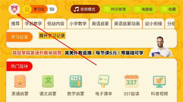 1、打開(kāi)數(shù)學(xué)思維app,點(diǎn)擊左上角的頭像圖標(biāo)。