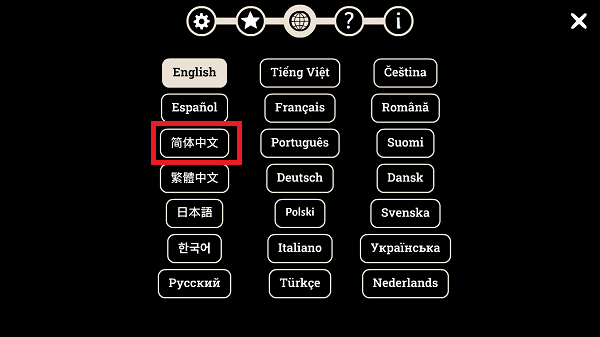 3、在語言選擇界面中可以看到會有很多語言,會有中文簡體和中文繁體的選項,點擊選中之后就可以返回主界面;