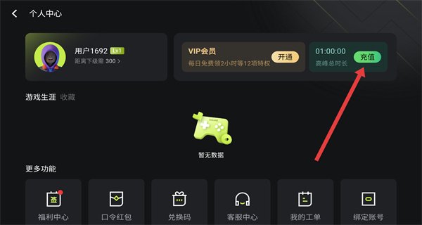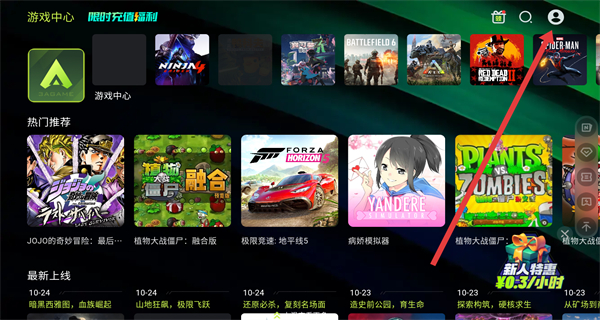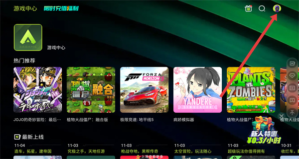 1、在游戲平臺首頁點(diǎn)擊右上角頭像,進(jìn)入個人中心頁面。