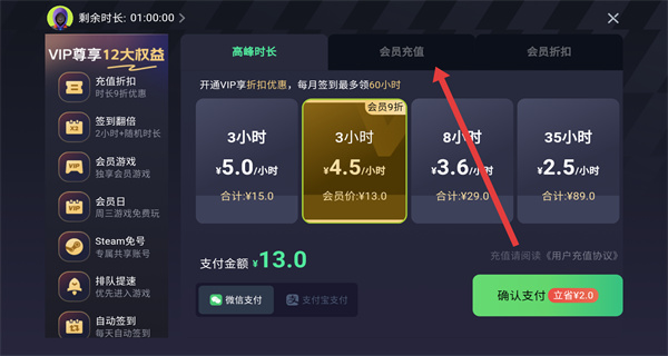 3、在充值頁面點(diǎn)擊“會員充值”,選擇“7天會員”選項(xiàng)。