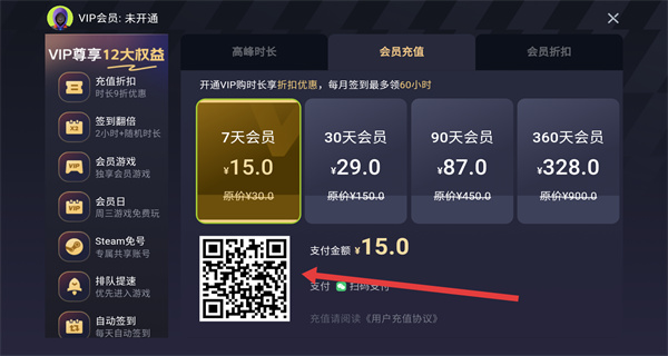 4、使用微信掃碼支付15元,即可完成7天會員的充值操作。