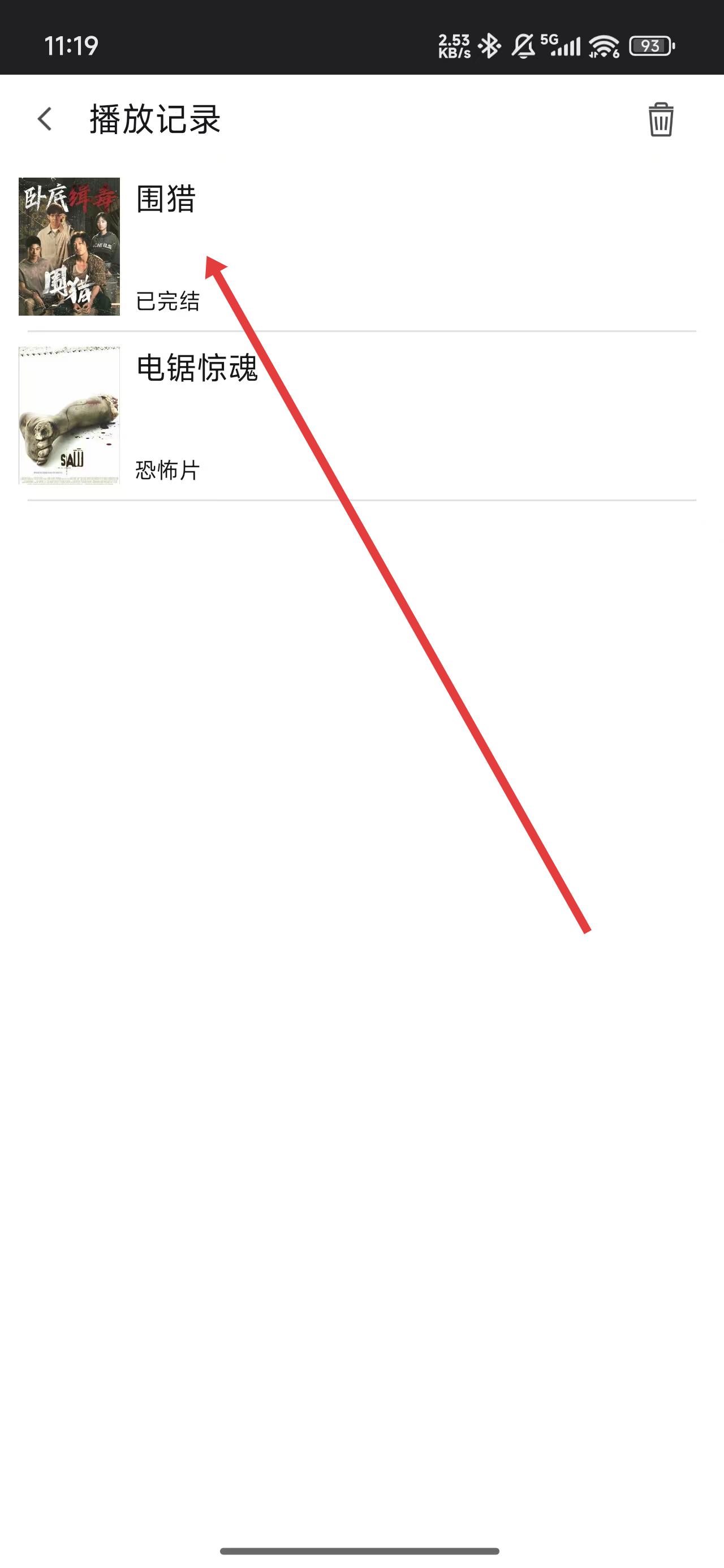 3、在進(jìn)入到播放記錄頁(yè)面中,可以點(diǎn)擊選擇圍獵進(jìn)入觀看。