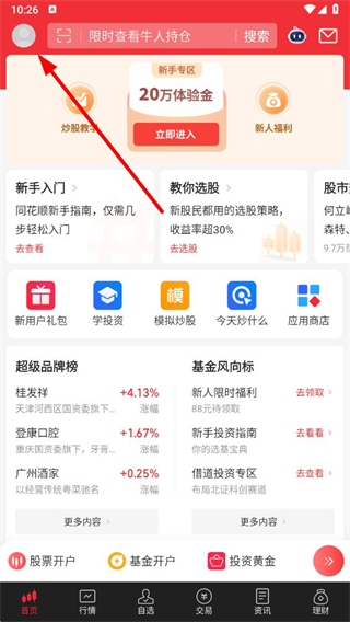1、打開同花順app,點擊左上角的頭像,進入個人頁面。