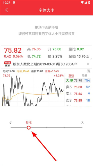 4、在字體大小設置頁面,拖動滑塊調(diào)整字體大小,完成字體大小修改操作。