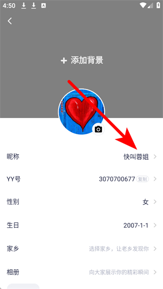 4、進入資料編輯頁面后,點擊昵稱選項,輸入新昵稱即可完成修改。