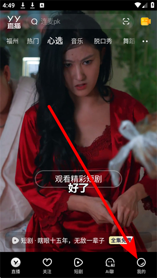 1、打開YY直播應(yīng)用,點擊底部導(dǎo)航欄的我的選項。