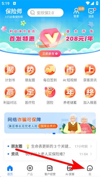 1、打開保險師APP,我們需要點擊右下角我,進入個人的頁面。