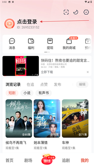 5、智能推薦:提供智能推薦功能,根據(jù)觀影歷史、喜好等信息,推薦興趣相關(guān)的短劇,發(fā)現(xiàn)更可能喜歡的影片。