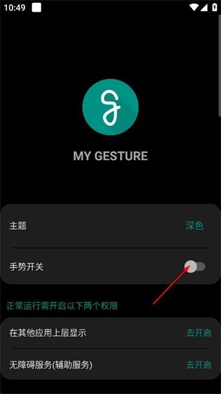 4、找到“手勢開關(guān)”,點(diǎn)擊其對應(yīng)的開關(guān)按鈕,開啟手勢功能。