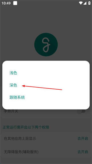 3、在主題選擇列表中,點(diǎn)擊“深色”選項(xiàng),切換軟件主題為深色。