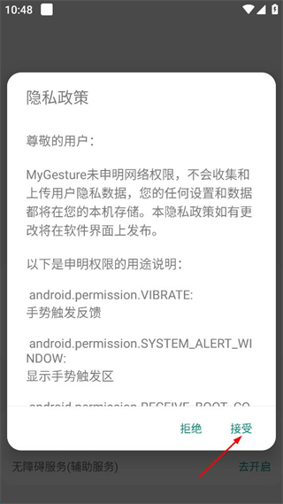 1、點(diǎn)擊“接受”按鈕,同意隱私政策,進(jìn)入軟件主界面。
