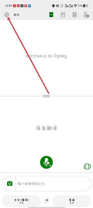 1、打開微軟翻譯APP,點(diǎn)擊齒輪形狀的圖標(biāo),進(jìn)入設(shè)置頁面。