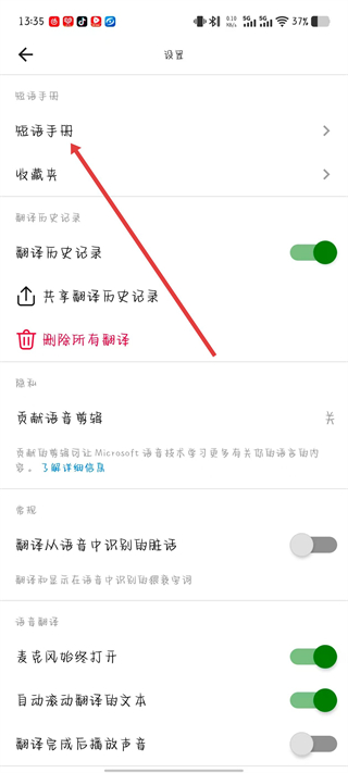 2、在設(shè)置頁面找到短語手冊選項(xiàng),點(diǎn)擊進(jìn)入短語手冊頁面。