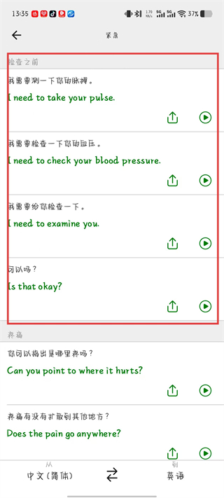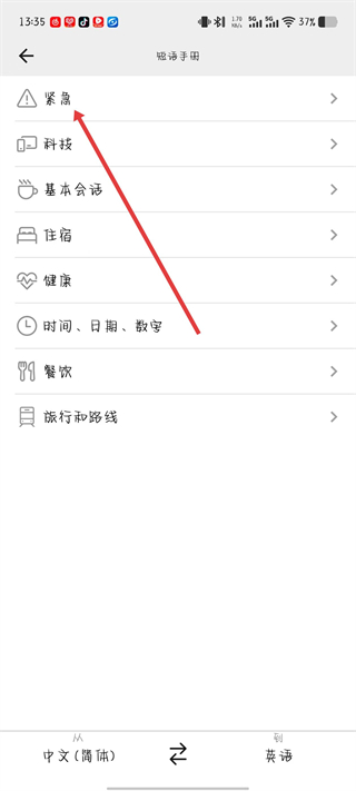 3、在短語手冊頁面選擇所需的分類,例如緊急分類。