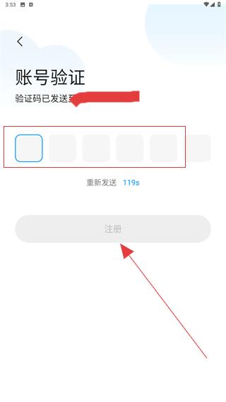 3、將收到的驗(yàn)證碼輸入其中后,點(diǎn)擊注冊按鈕即可完成。