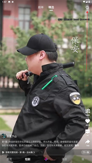 2、進(jìn)入短劇的頁面內(nèi),點(diǎn)擊右上角搜索的圖標(biāo)。