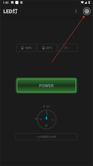 1、打開手電筒軟件,點(diǎn)擊右上角的圓形圖標(biāo)。