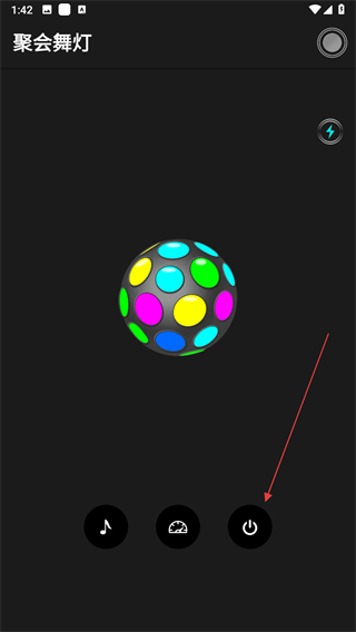 3、進(jìn)入聚會(huì)舞燈界面后,點(diǎn)擊下方的電源按鈕。