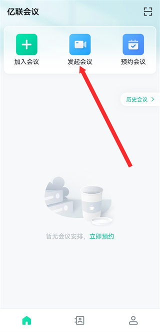 1、打開億聯(lián)會(huì)議APP,點(diǎn)擊發(fā)起會(huì)議,進(jìn)入發(fā)起會(huì)議設(shè)置頁面。