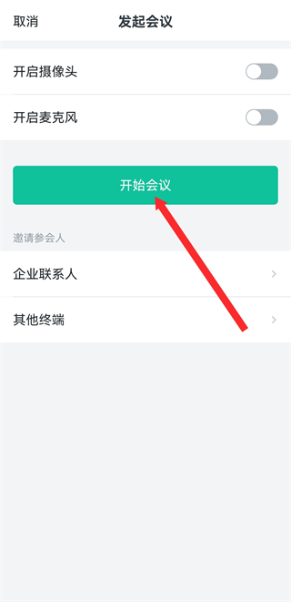 2、在發(fā)起會(huì)議頁面,點(diǎn)擊開始會(huì)議,即可創(chuàng)建并進(jìn)入會(huì)議。