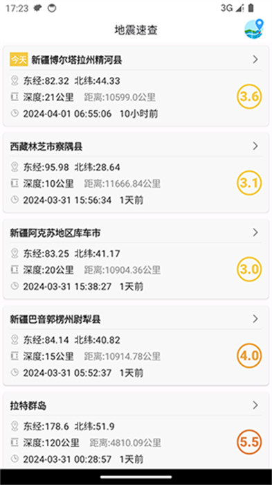 3、在線上急速的查詢地震及時的信息輔助工具,方便用戶們及時的了解到實況;