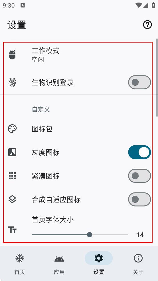 4、在設置頁面,可對工作模式、生物識別登錄、圖標包等進行設置。