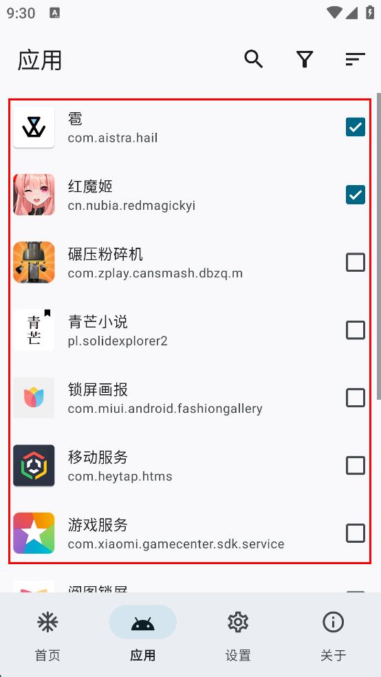 2、在應用頁面,可查看并選擇如雹、紅魔姬等應用。