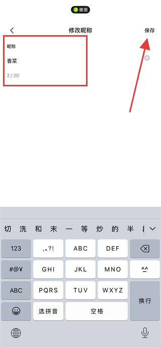 4、在修改昵稱頁(yè)面,輸入新的昵稱后點(diǎn)擊保存按鈕,即可完成名字的修改。