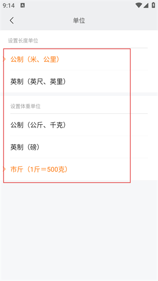 4、選擇所需的長度單位和體重單位,即可完成單位設(shè)置修改。