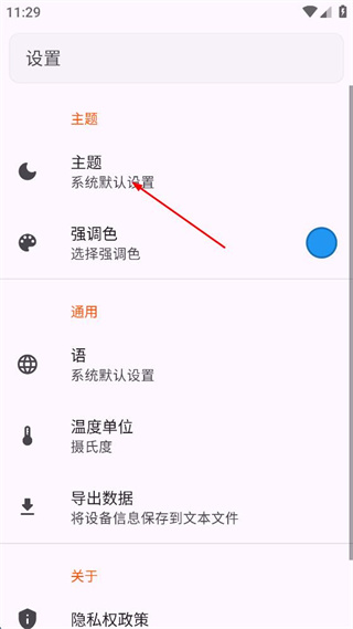 4、在主題選擇窗口中可選擇淺色、深色、系統(tǒng)默認(rèn)設(shè)置三種主題模式。