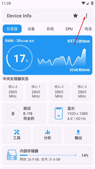 3、利用該工具能夠及時檢測手機(jī)的硬件,查看有故障的地方及時的進(jìn)行維修處理。