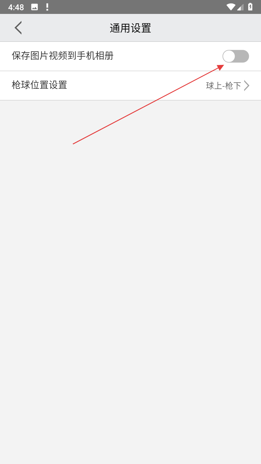2、在通用設(shè)置界面里能看到保存圖片視頻到手機(jī)相冊(cè)選項(xiàng),其右側(cè)是灰色關(guān)閉狀態(tài)的開(kāi)關(guān)按鈕,點(diǎn)擊該按鈕。