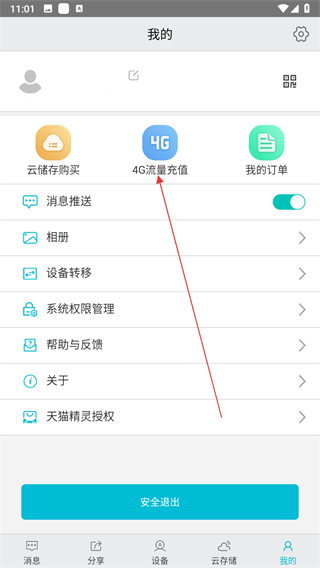 2、在我的頁(yè)面,點(diǎn)擊4G流量充值選項(xiàng)。