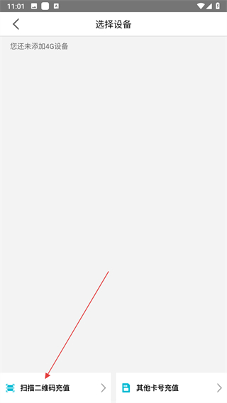 3、在選擇設(shè)備頁(yè)面,點(diǎn)擊掃描二維碼充值。