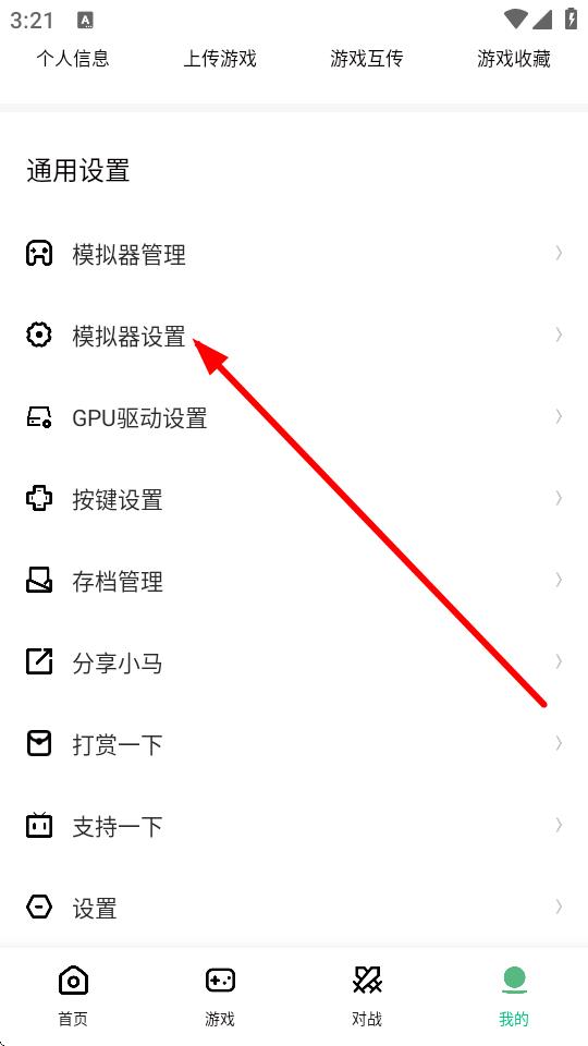 2、在我的頁面里,找到通用設(shè)置部分,點(diǎn)擊模擬器設(shè)置選項。