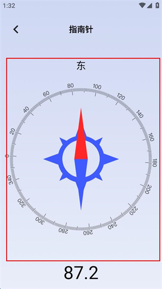 3、在指南針界面,可查看指南針的方向及角度數(shù)值。