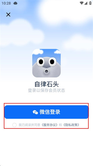 3、在登錄頁面勾選同意服務協議和隱私政策,點擊微信登錄按鈕完成登錄。