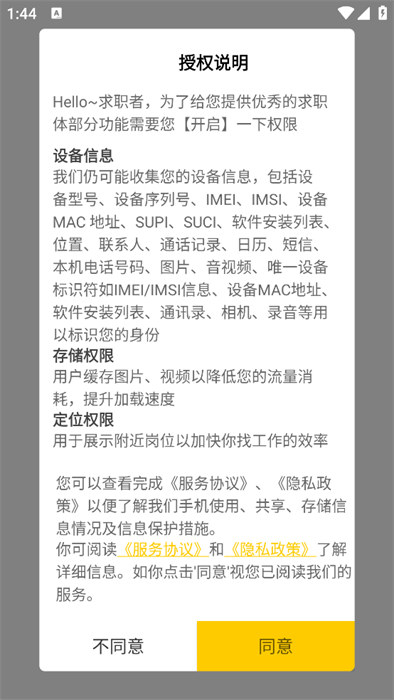 1、打開軟件之后閱讀用戶協(xié)議和隱私政策的信息內(nèi)容,點(diǎn)擊同意之后就能進(jìn)入到軟件里面;