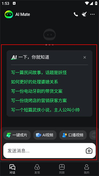 4、登錄后點擊“對話”,即可使用AI對話功能。