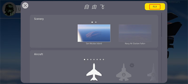 3、然后在這里選擇一個(gè)飛行的場(chǎng)景與一個(gè)飛機(jī)的型號(hào),隨后就可以點(diǎn)擊【FLY】,展開飛行之旅;