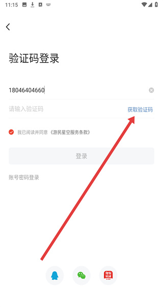 4、在獲取到驗證碼后點擊輸入填寫,在點擊登錄按鈕,即可完成登錄賬號。