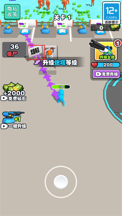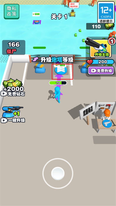 4、升級完炮塔之后,需要前往武器商店內進行武器的購買,靠近武器商店即可進入;