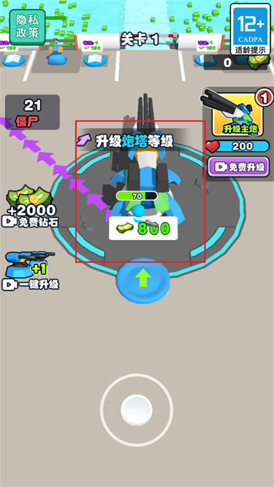 3、還可以按照游戲之中的引導提示來快速的抵達炮塔所在的位置,以進行炮塔的升級;