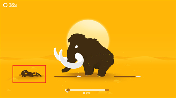 6、而當(dāng)玩家不幸被大象攻擊時(shí),玩家將會(huì)倒地不起,意味著此輪游戲失敗。