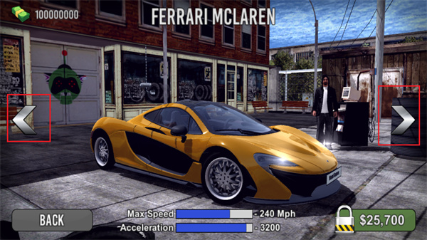 2、在正式的開(kāi)始游戲之前,玩家將需要點(diǎn)擊屏幕兩側(cè)的箭頭按鈕,以進(jìn)行汽車(chē)的選擇;